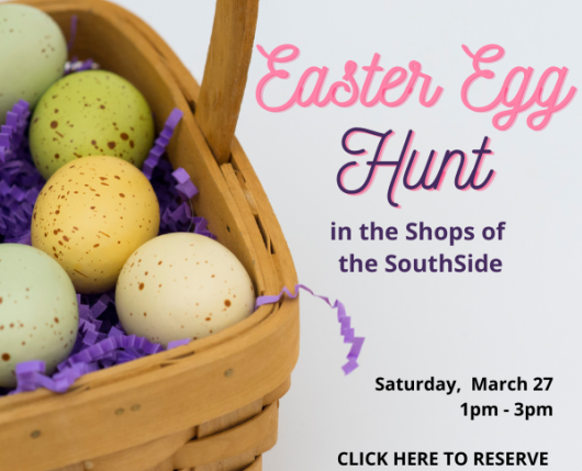 Grab your baskets and join the hunt Saturday, March 27 at 1 p.m. for an Easter Egg Hunt in the shops and restaurants of the SouthSide Arts District.